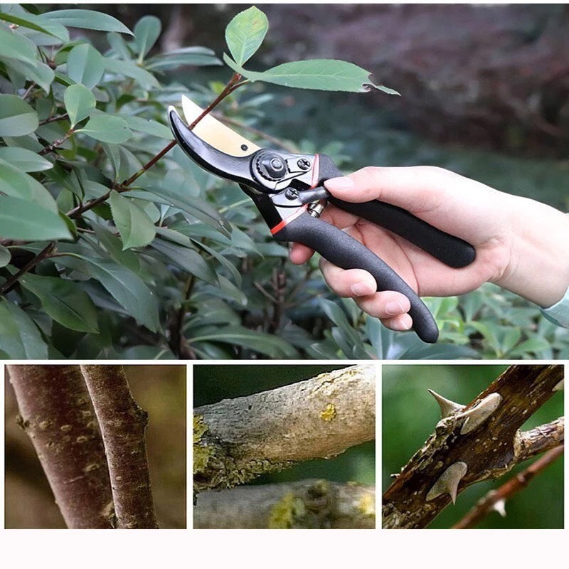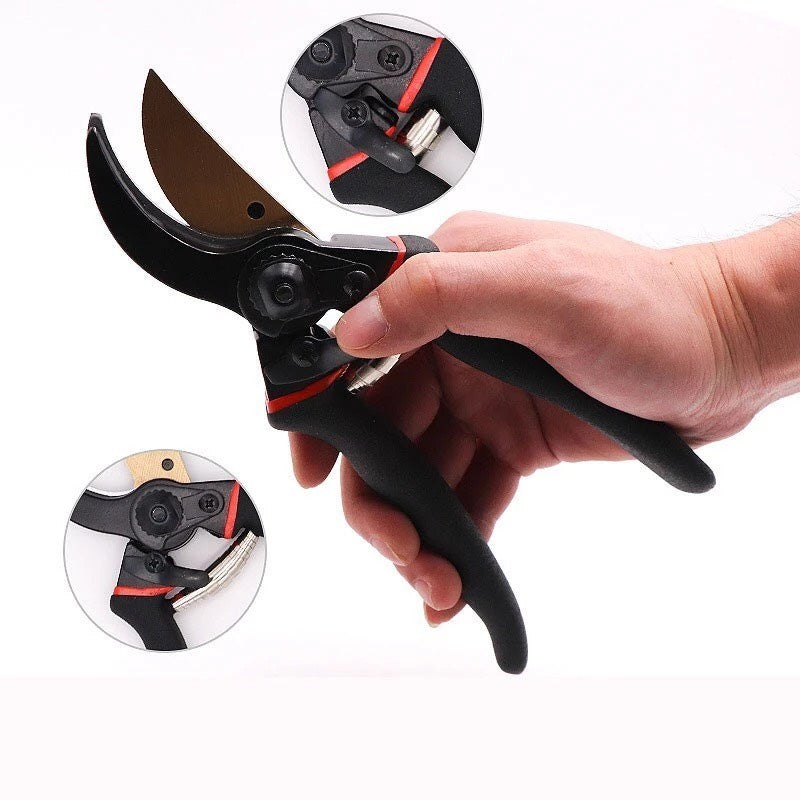 • Use a small amount cloth to wipe off pruning shears siltation resin, and then coated with anti rust oil after using.