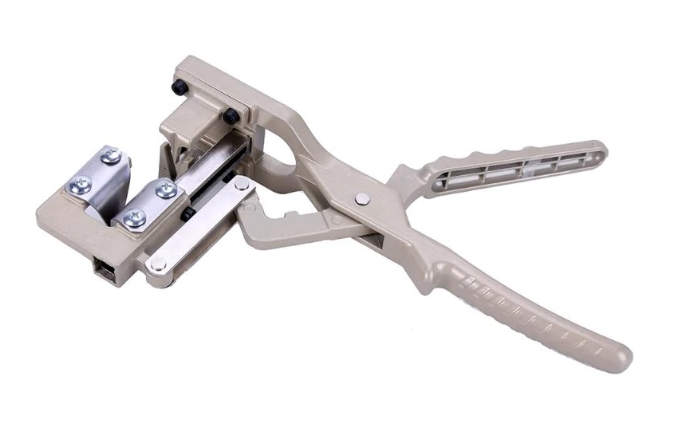 Step 1: Hold the grafting stock in the grafting tool and squeeze the handle to make the cut, repeat this step to cut stem from the donor plant. Take care to ensure that the groove is cut in the stock plant.