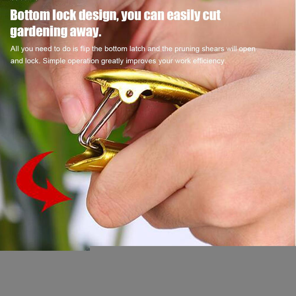 • 4、Bottom Lock Design: You can easily cut gardening away. All you need to do is flip the bottom latch and the pruning shears will open and lock. Simple operation greatly improves your work efficiency.