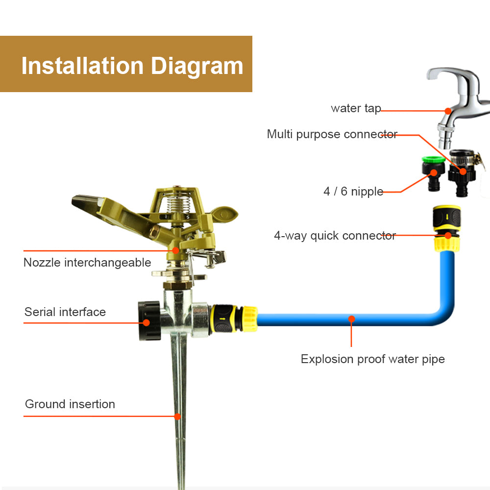 Garden Metal Sprinkler Spike Lawn Grass 360 Degree Adjustable Rotating Water Nozzle Impulse Sprayer For Irrigation System tools Specification: Brand new Material: Alloy Color: As the pictures shown Overall Length:...
